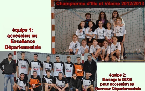 - équipe masculine 2: match de barrage pour accession en Honneur départementale. Ce match se déroulera le samedi 08/06 à 19h salle du prieuré à Chateaubourg contre Chantepie 3.