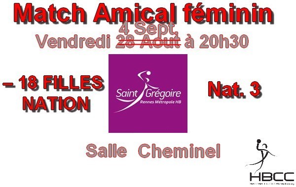 Pour la reprise de la saison, les filles de RMH viennent faire un match amical à Chateaubourg. Ce match opposera l'équipe des – 18 FILLES NATION contre L'équipe de NATIONALE 3.