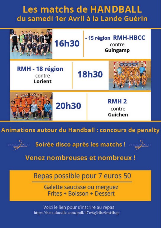 Le 1 avril 2017, Journée handball à Acigné + repas et soirée "disco"