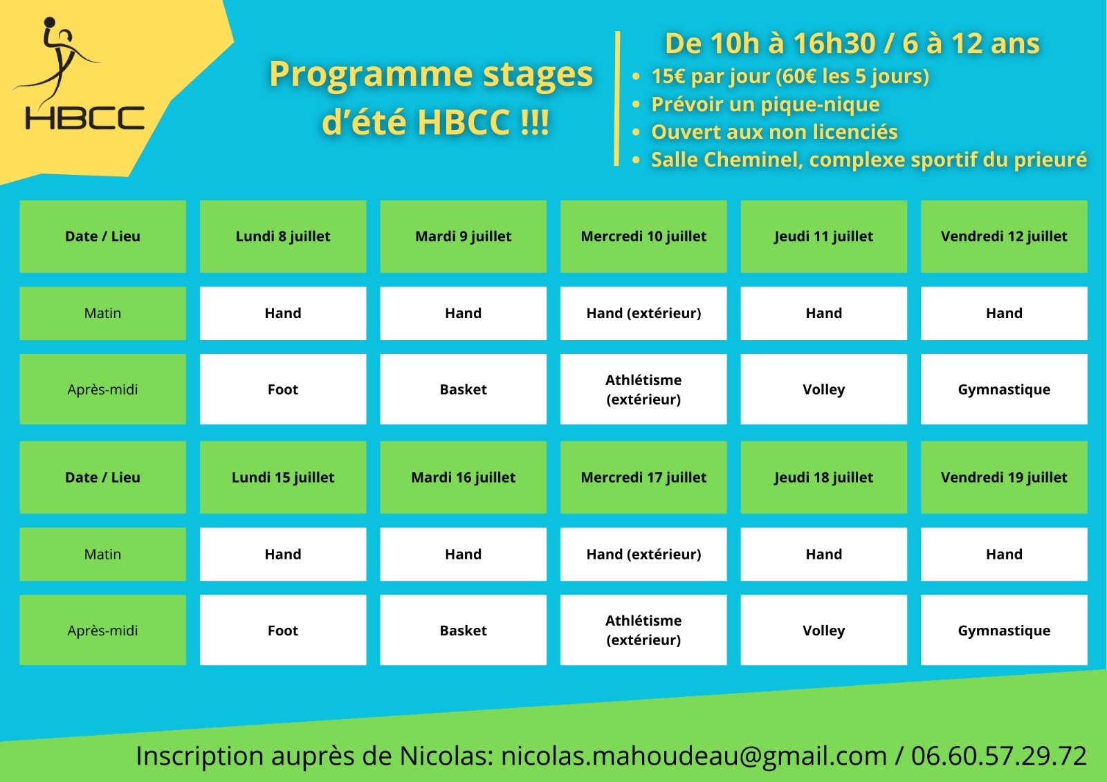 Le HBCC met en place des stages de début d'été ouvert aux catégories minihand, U11 et U13, garçons et filles !